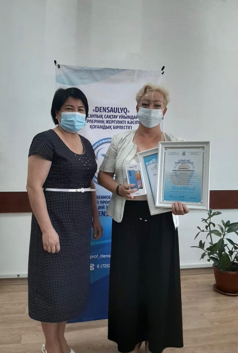 Түркістан облыстық «DENSAULYQ» денсаулық сақтау ұйымдары жұмыскерлерінің жергілікті кәсіподағы атынан медицина қызметкерлерінің күніне орай «Үздік маман» номинациясы бойынша облыстағы емдеу мекемелеріндегі қызметкерлеріне құрмет көрсетілді.